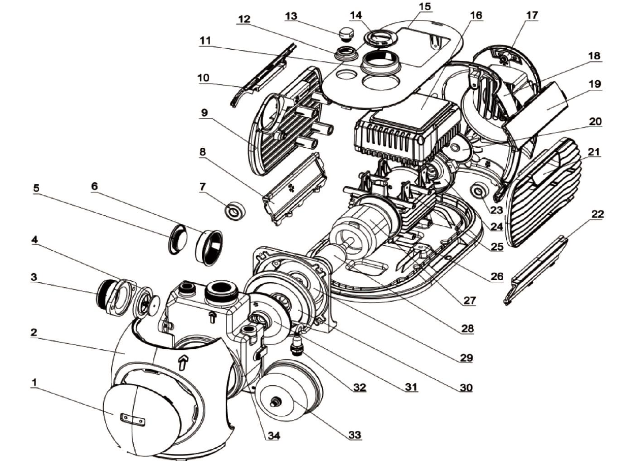 14. Крышка выходного патрубка.
